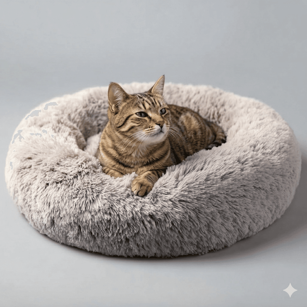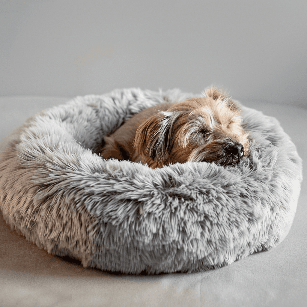 Ultra-soft donut cave bed designed to reduce anxiety and create a warm, secure sleeping space for pets.
