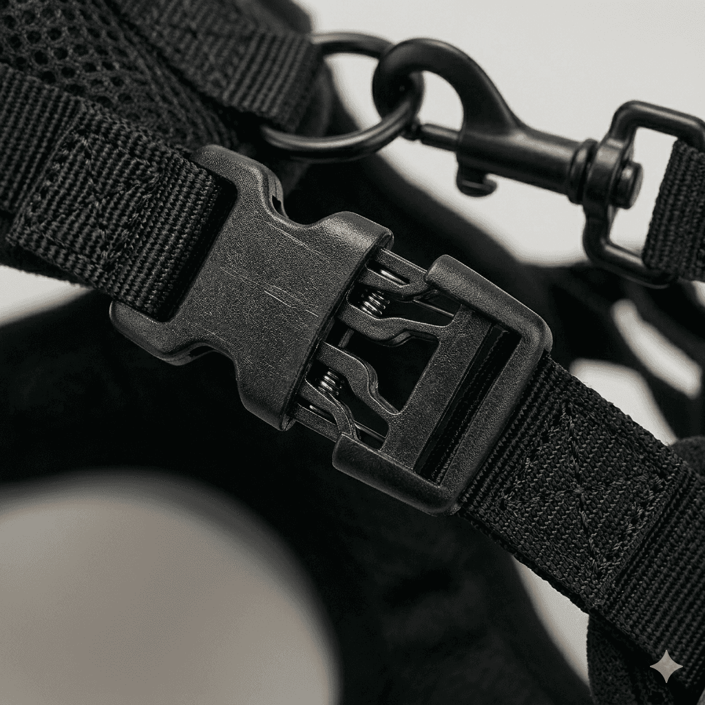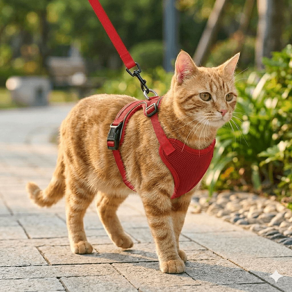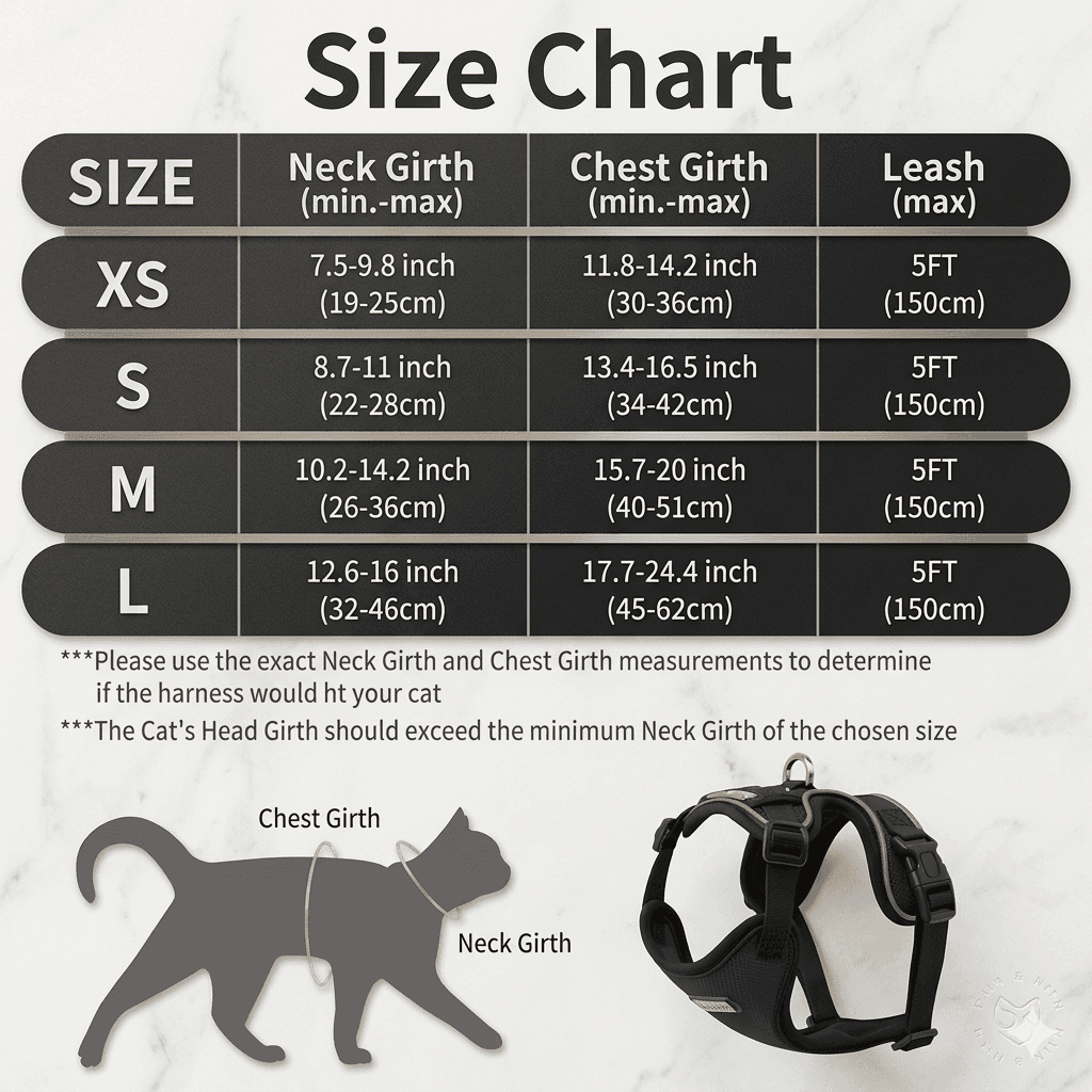 H-design harness distributing pressure evenly. Breathable mesh fabric. Fully adjustable for cats over 3kg. Secure clip buckles.