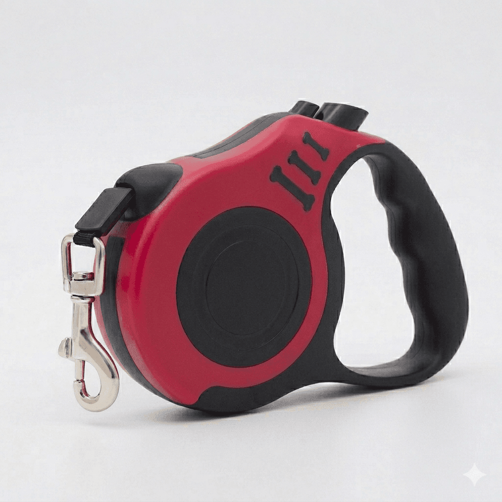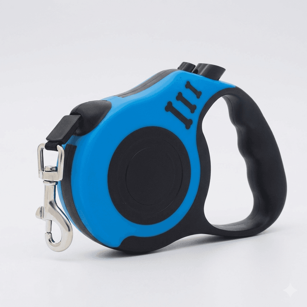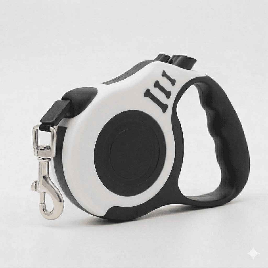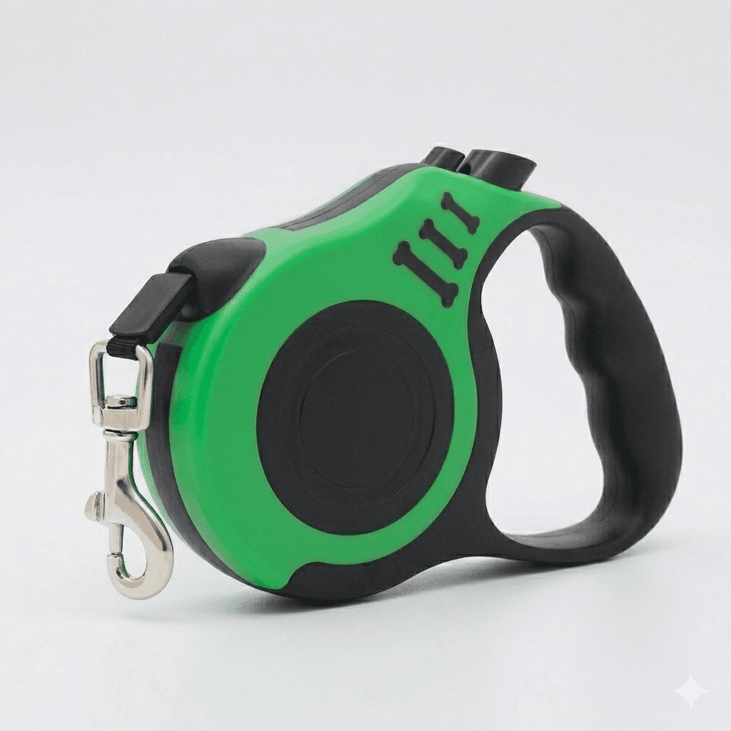 Up to 5m retractable cord with one-click brake and lock. Ergonomic anti-slip handle. Reflective strip full length.