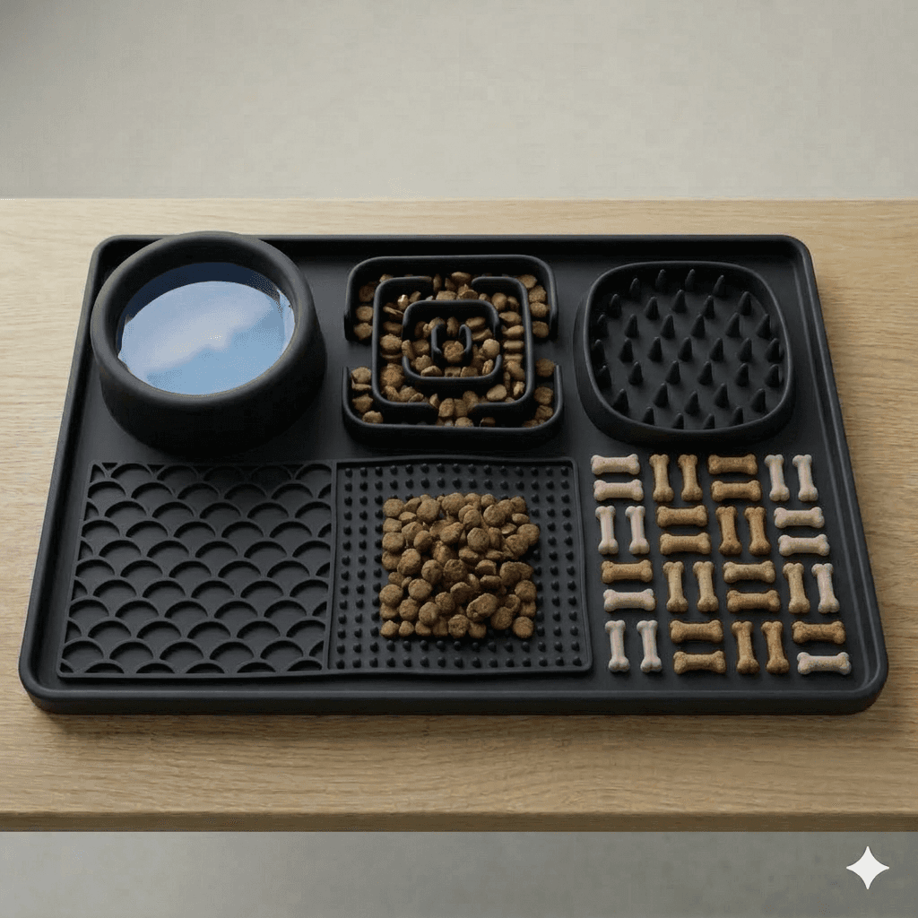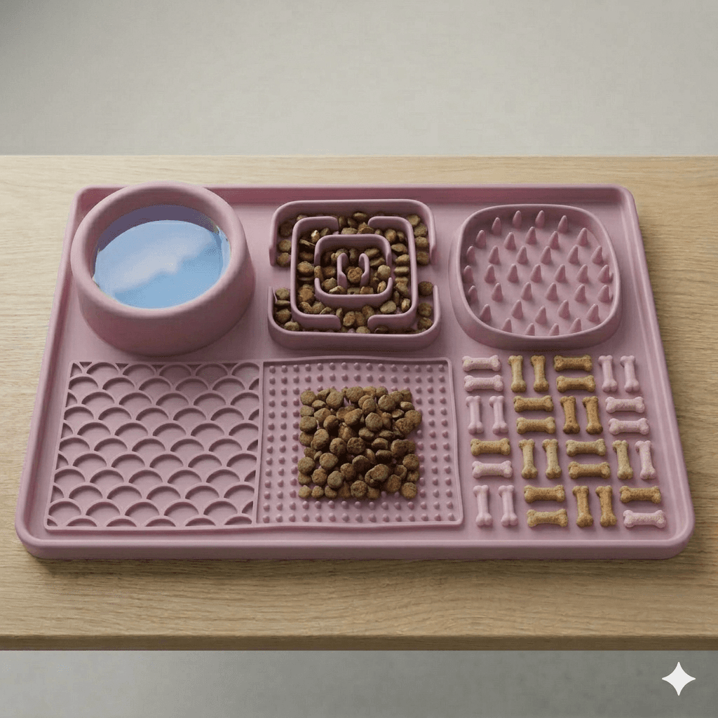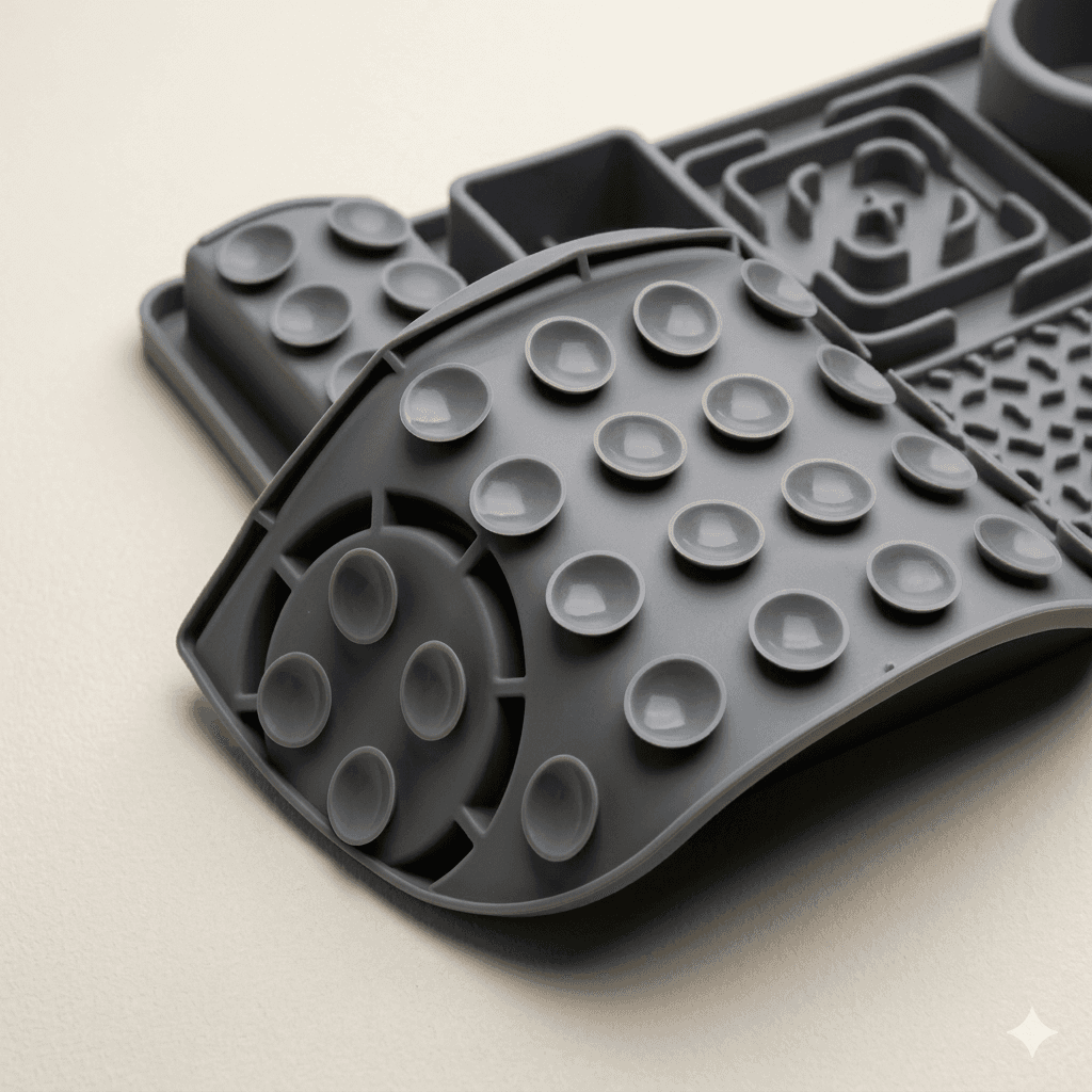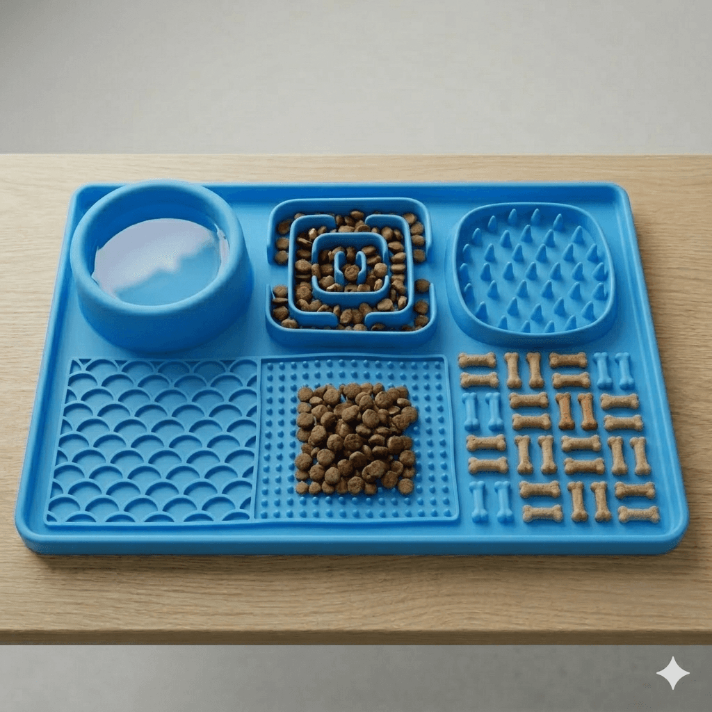 Silicone lick mat designed to slow feeding, reduce anxiety, and keep dogs calmly engaged through soothing licking.